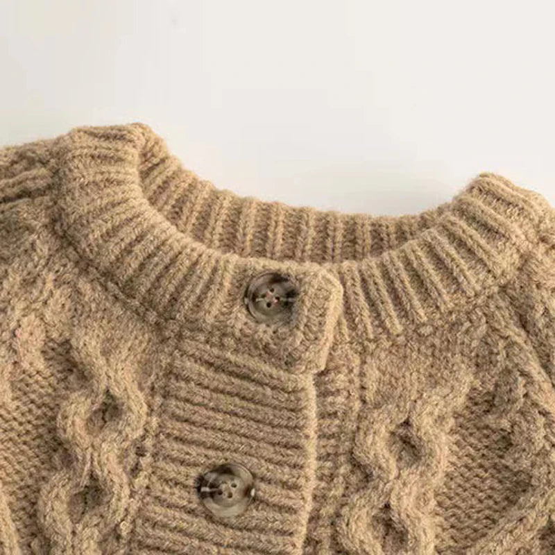 Ciepły i przytulny kardigan wykonany z mięsistej bawełny, która otula dziecko miękkością i zapewnia komfort noszenia. Piękny, wyrazisty splot dodaje mu wyjątkowego charakteru i sprawia, że to idealny wybór na jesienne stylizacje. Sprawdzi się zarówno na co dzień, jak i podczas rodzinnych spotkań.