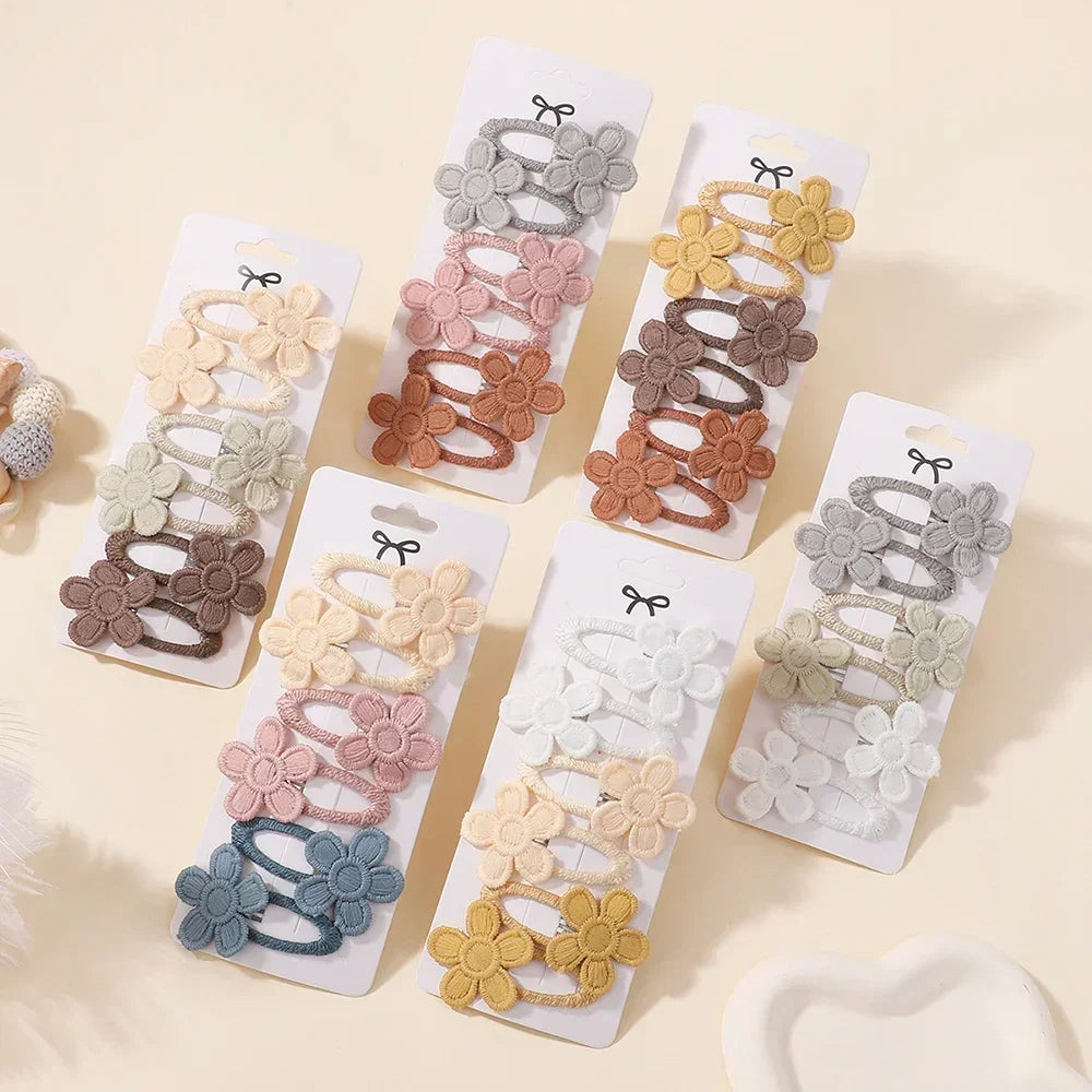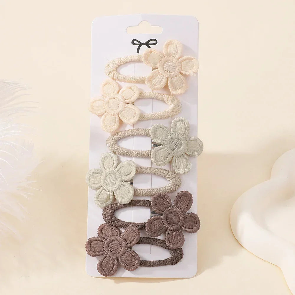 Delikatne spinki do włosów dla dziewczynek w uroczym, kwiatowym wzorze. Wykonane z miękkiego materiału, nie obciążają włosów i są przyjemne w noszeniu, a jednocześnie pewnie je utrzymują. Idealne, aby dodać każdej fryzurze dziewczęcego uroku – na co dzień i na wyjątkowe okazje.